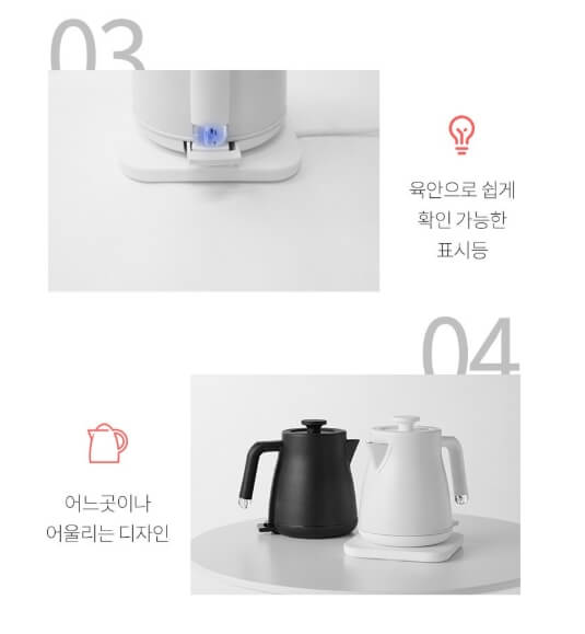다른 디자인을 추가하지 않아 모던한 디자인과 심플함을 추구하는 전기 포트입니다.