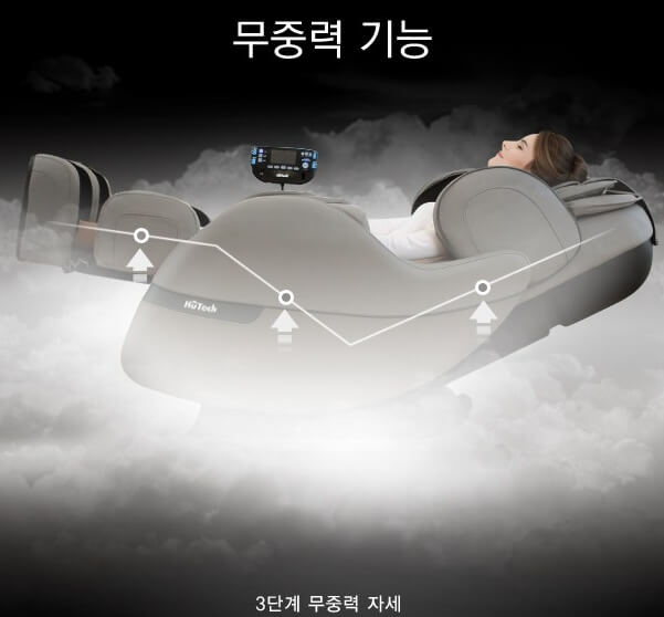 마지막으로 시트에 가해지는 무게점을 분산하여 마치 무중력 상태와 같은 가장 편안한 자세를 제공하고 무단계 전동 리클라이닝 시스템과 강력한 공기압 에어셀을 통해 허리와 다리를 늘려주고 배부분은 위로 밀어내는 느낌을 줘 스트레칭 효과를 제공해주고 있습니다.