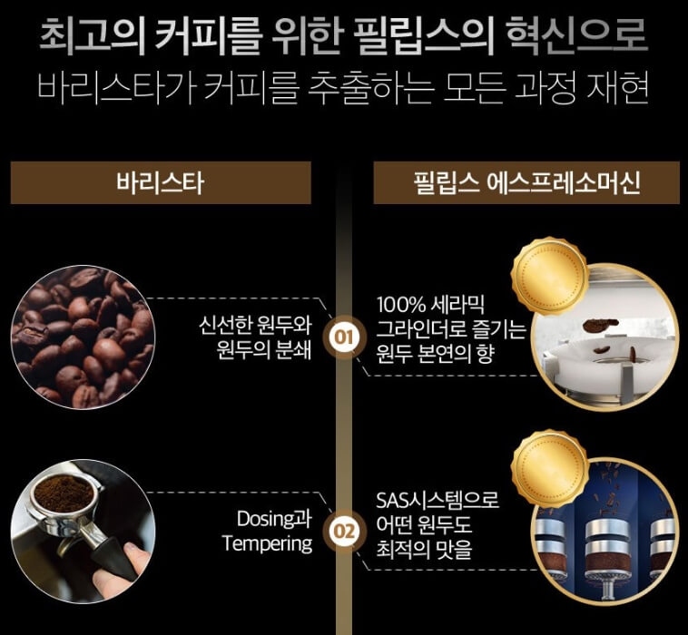 맛 재현을 위한 필립스 커피 머신 EP5363/13 추출 과정