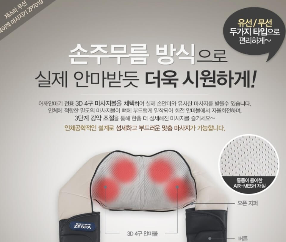 제스파 목 어깨 마사지기 ZP7019의 특장점